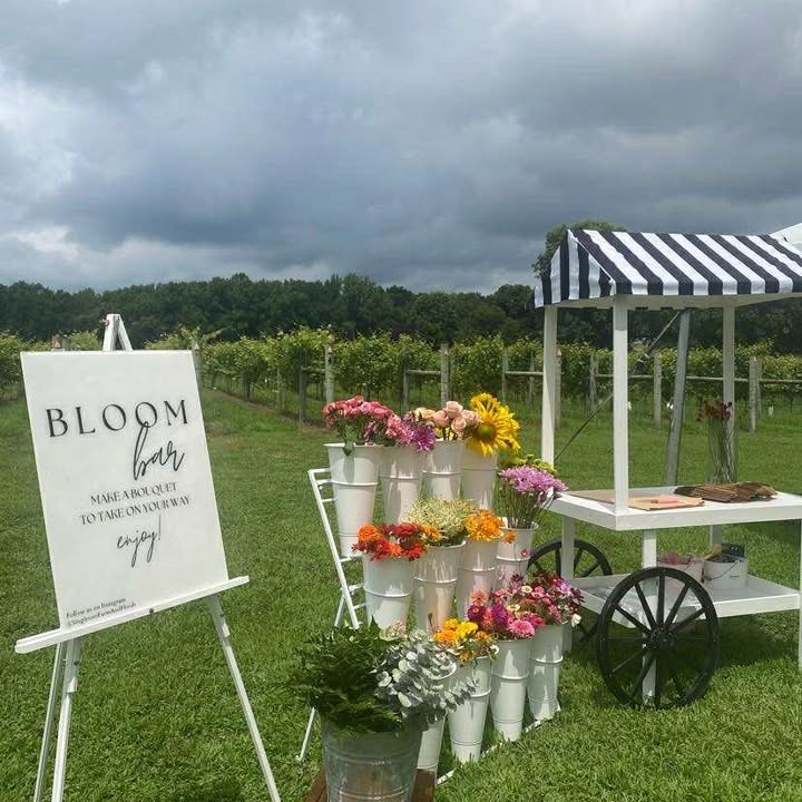 We can also stock your bloom bar with our farm fresh seasonal flowers for an additional. Inquire about our rentals by clicking the button below.